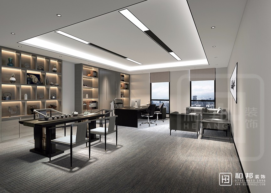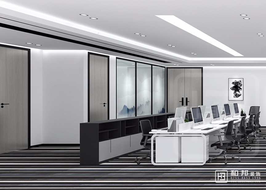 較為精煉的顏色打造干凈整潔的視覺效果,可以達到放大空間的視覺效果,有助于提升整個辦公空間的品質感。
